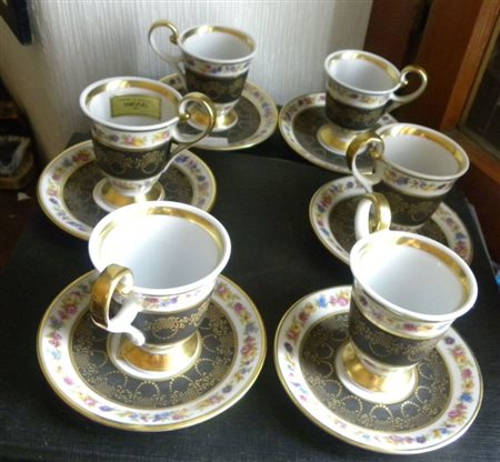 VINTAGE Anni 60, Servizio da Caffe' 6 Pezzi In Porcellana di Limoges, Marchio Depositato Copie D' Ancien e Numerato, in Perfette Condizioni