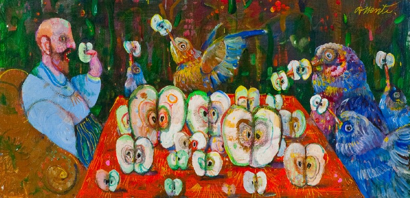 Antonio Possenti (Lucca 1933) LE MELE Olio su cartone telato, cm. 20x40...