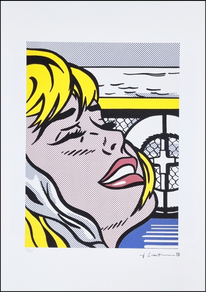 LICHTENSTEIN ROY New York 1923 - 1997 "Senza titolo" Riproduzione litografica offset cm 35x50. Firma in stampa sul fronte in basso a destra, tiratura 28/150 a sinistra. Sul retro ologramma di autenticità.