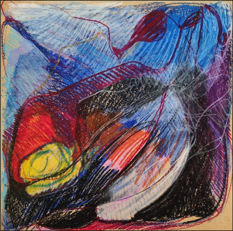 BOERO RENATA Genova 1936 "Paesaggi Masai" Pastelli grassi su cartoncino cm 70x70, del 1999. Al retro dedicato e firmato. Certificato di garanzia ed autenticità a cura della Galleria d'Arte Elite.