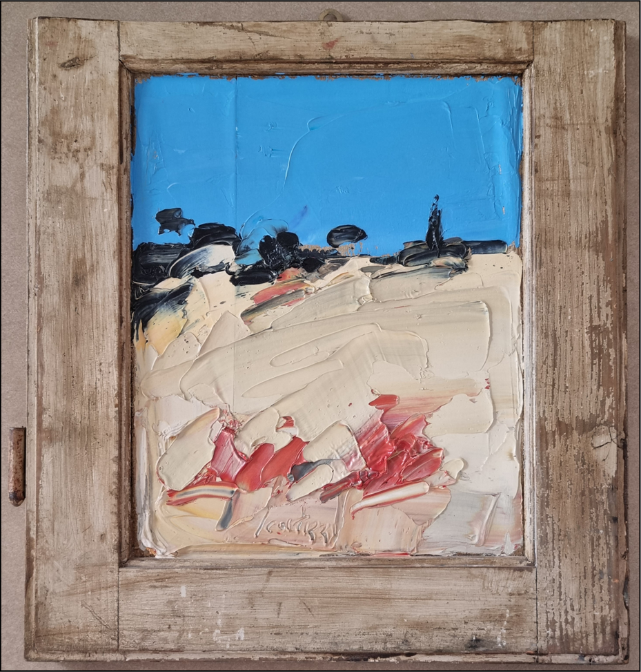 SCATIZZI SERGIO Gragnano 1918 - Firenze 2009 "Paesaggio" Olio su tavola cm 44,5x46 del 2005. Firmato sul fronte in basso al centro. Cornice facente parte dell'opera. Certificato di autenticità a cura di ArteTV.