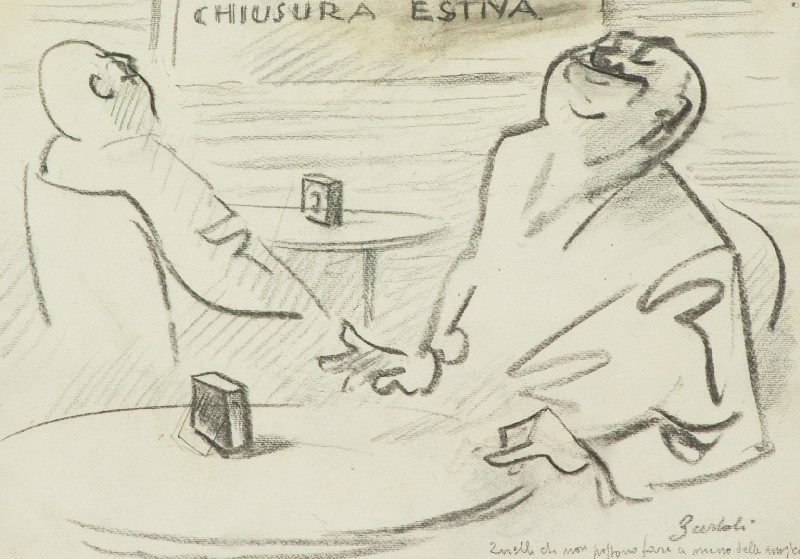 Amerigo Bartoli ( 1890 - 1971) QUELLI CHE NON POSSONO FARE A MENO DELLA MUSICA Carboncino su carta, cm. 23x32 Firma e titolo in basso a destra.