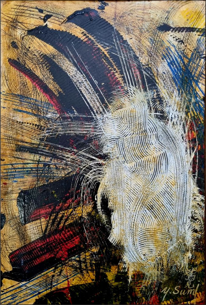 SUMI YASUO Giappone 1925 - 2015 "Sakuhin" Inchiostro, smalto e vernice su carta, applicata su pannello di legno, cm 56,2x84 del 1978. Firmato sul fronte in basso a destra. Sul retro firma, titolo e ideogrammi. Certificato di autenticità su foto a cura dell'archivio generale dell'Artista.