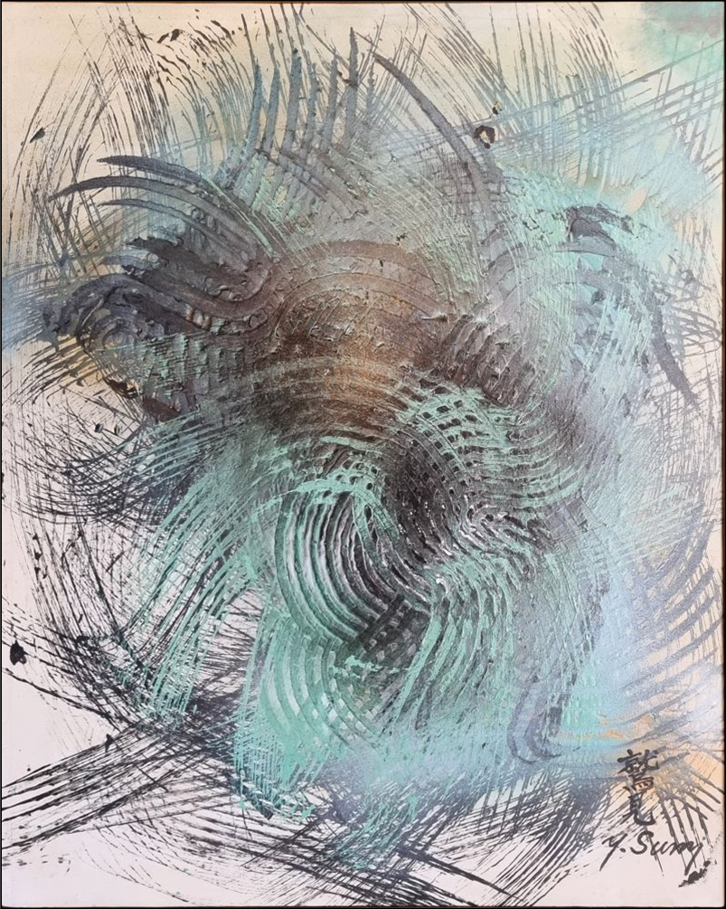 SUMI YASUO Giappone 1925 - 2015 "Senza titolo" Inchiostro, smalto e lacca spray su tela cm 72,8x91,1 del 1986. Firmato sul fronte in basso a destra. Certificato di autenticità su foto a cura dell'archivio generale dell'Artista.