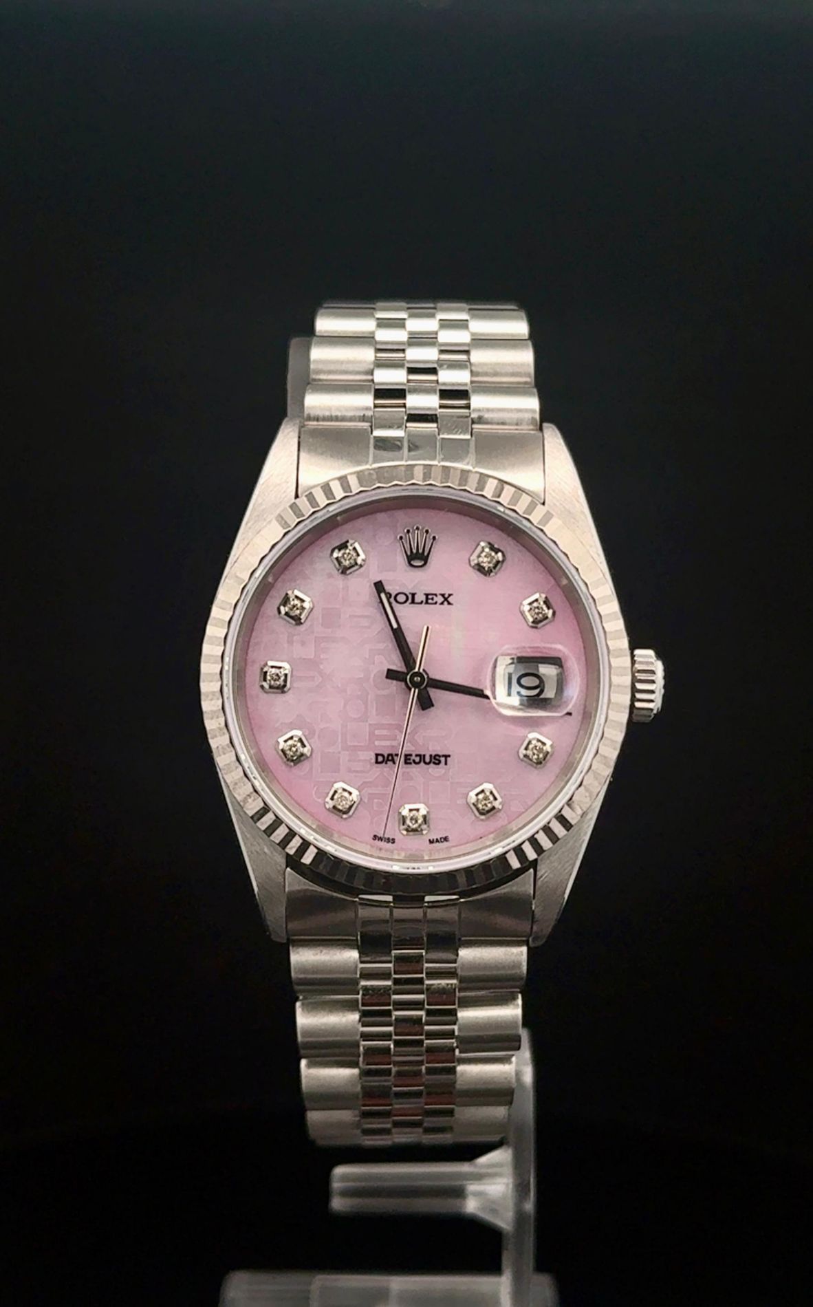 Marca Rolex Modello (Orologio) Datejust 36 Numero di referenza 16234 Carica Automatico Materiale della cassa Acciaio Materiale cinturino Acciaio Anno 1997 Quadrante aftermarket con diamanti Condizione Usato (Ottimo) L'articolo presenta segni di usura lievi, come ad esempio graffi leggeri, ma non percepibili al tatto. documenti originali Rolex, no box, la scatola viene utilizzata solo per fotografie non è in vendita Carica Automatico Cassa Materiale della cassa Acciaio Diametro 36 mm Impermeabile 10 ATM Materiale lunetta Oro bianco Vetro Vetro zaffiro Cinturino Materiale cinturino Acciaio Colore cinturino Acciaio Chiusura Déployante Materiale chiusura Acciaio