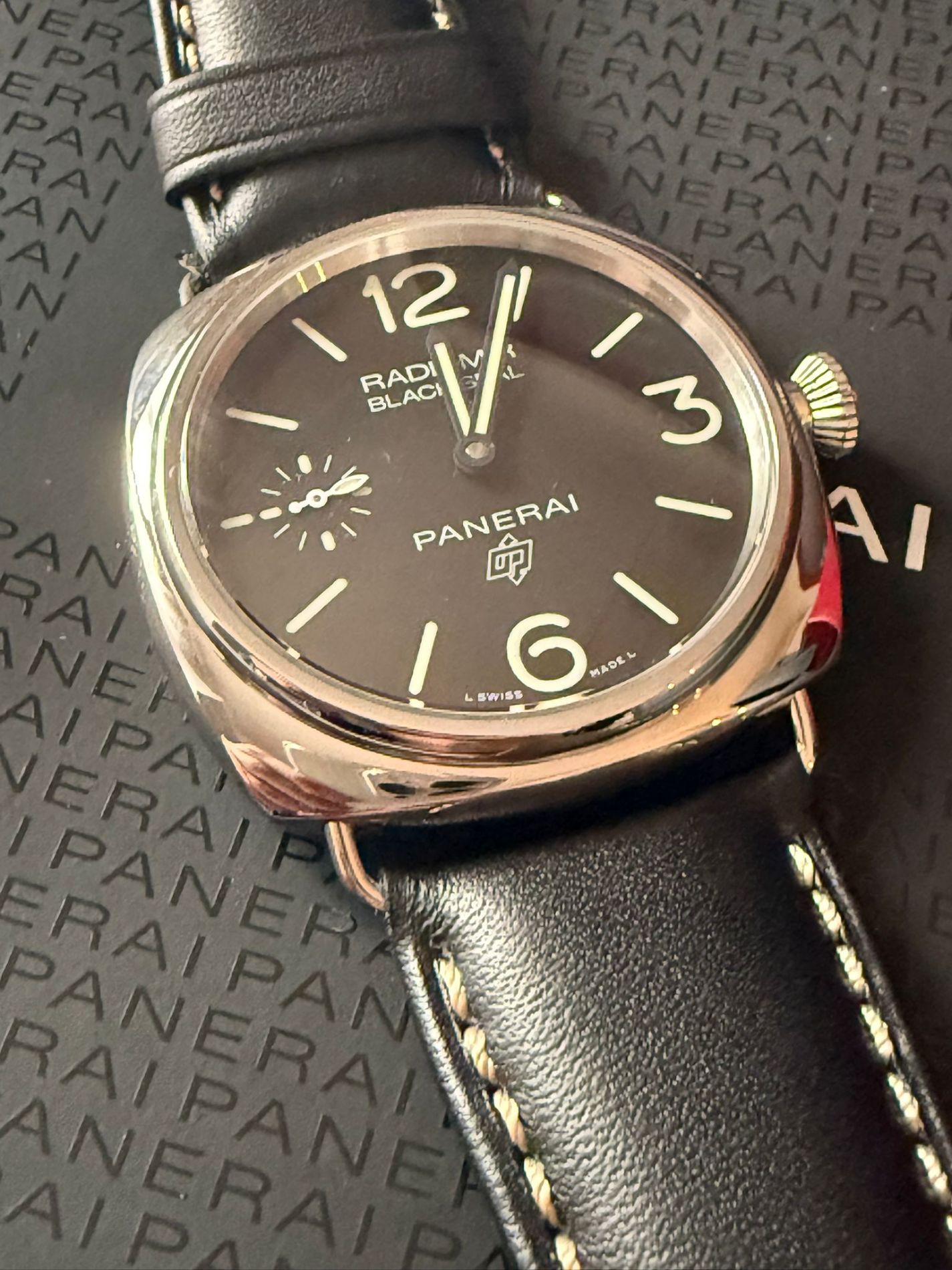 Marca Panerai Numero di referenza PAM 00754 Carica Manuale Materiale della cassa Acciaio Materiale cinturino Pelle Anno di produzione Non disponibile Condizione ottimo Revisione interna Corredo Con documenti originali, con scatola originale Carica manuale Cassa Materiale della cassa Acciaio Diametro 45 mm Impermeabile 10 ATM Materiale lunetta Acciaio Vetro Vetro zaffiro Quadrante Nero Numeri sul quadrante Arabi Cinturino Materiale cinturino Pelle Colore cinturino Nero Chiusura Chiusura ad ardiglione Materiale chiusura Acciaio Descrizione