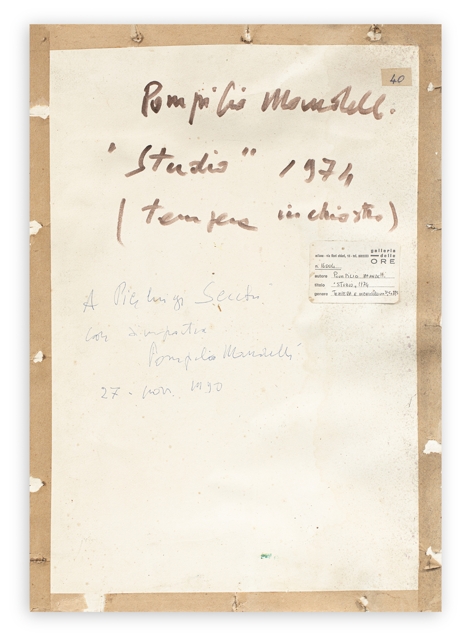 Firma, titolo, datazione e tecnica al retro sul cartone di supporto