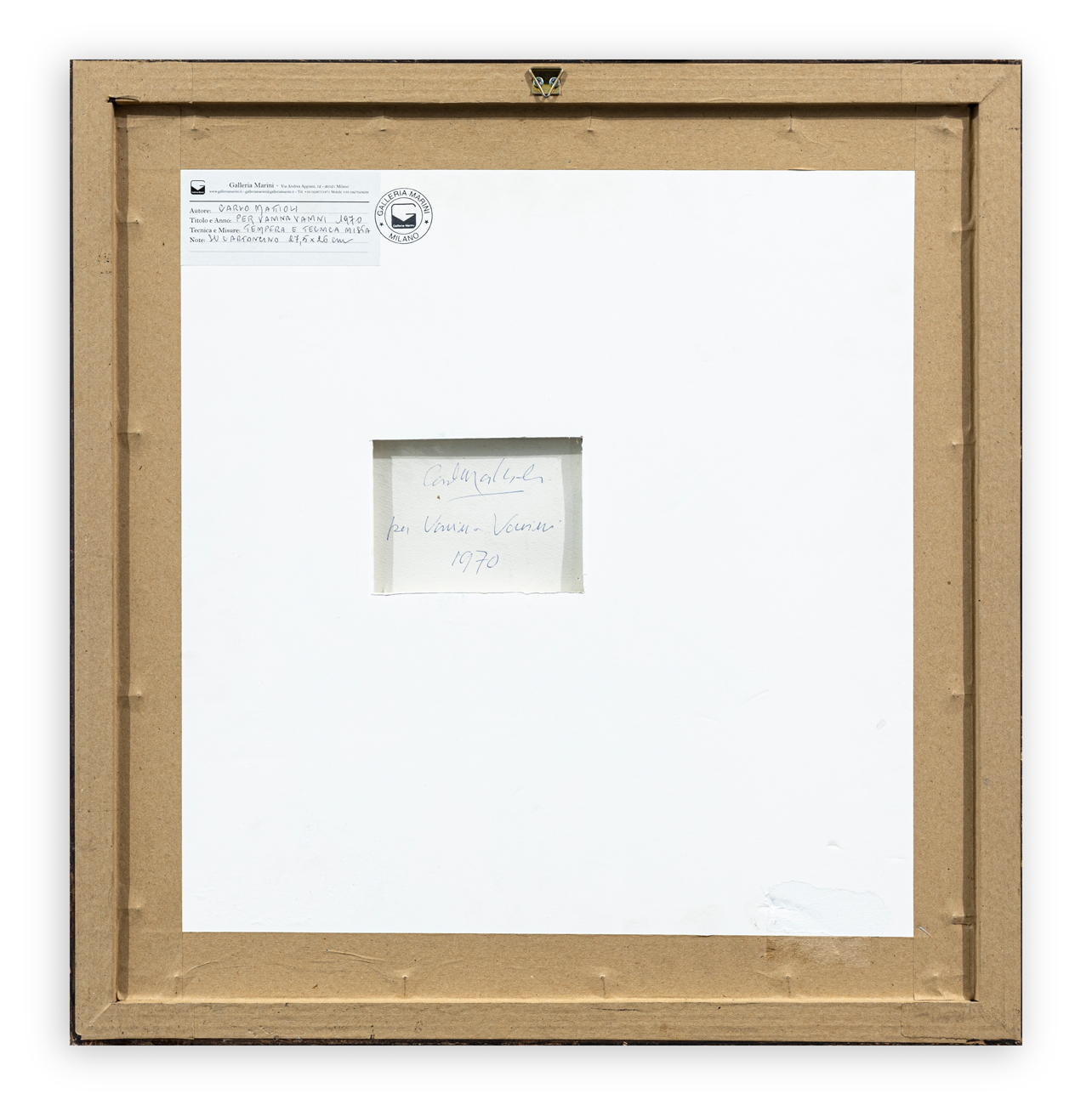Etichetta e timbro della Galleria Marini (MI) al retro del cartone protettivo