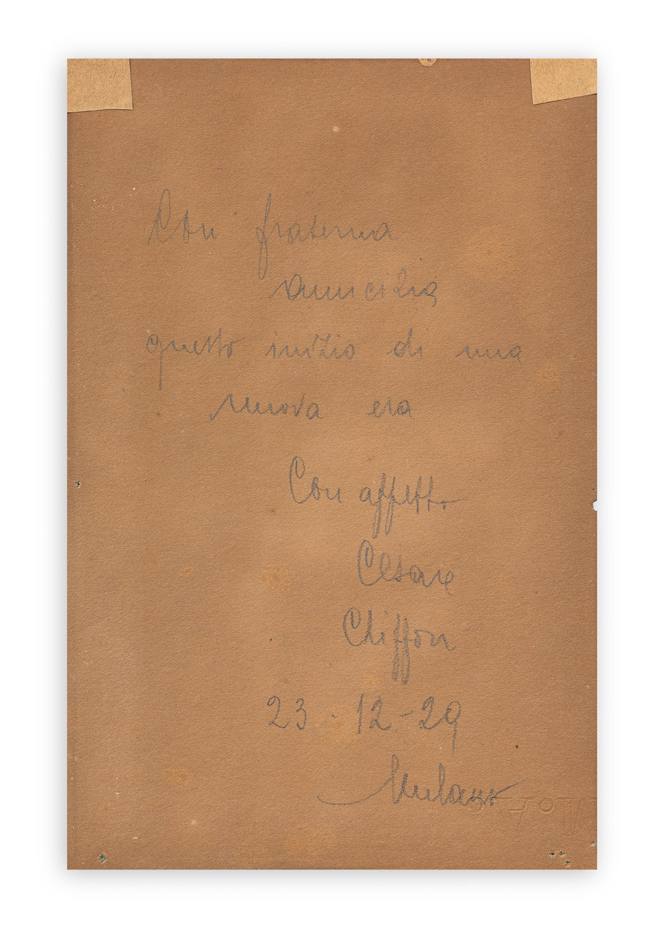 Firma e dedica ad personam datata 23/12/1929 al retro