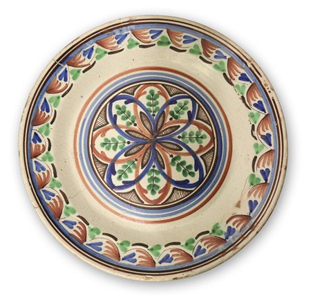 Grande piatto di Caltagirone decorato policromo invetriato e smaltato, 20° secolo