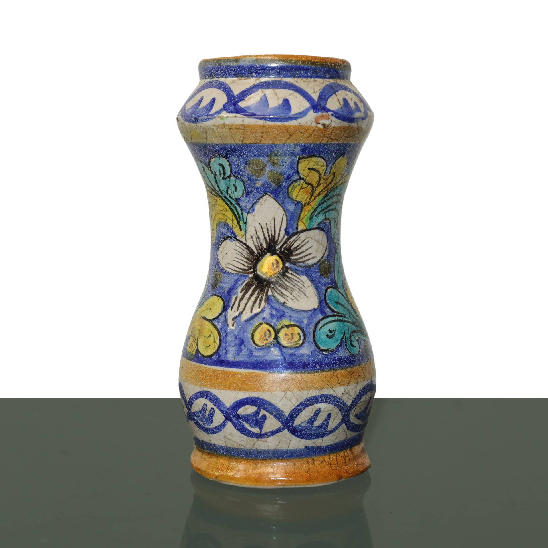 Albarello in ceramica di Caltagirone invetriato e smaltato, Primi 20° secolo