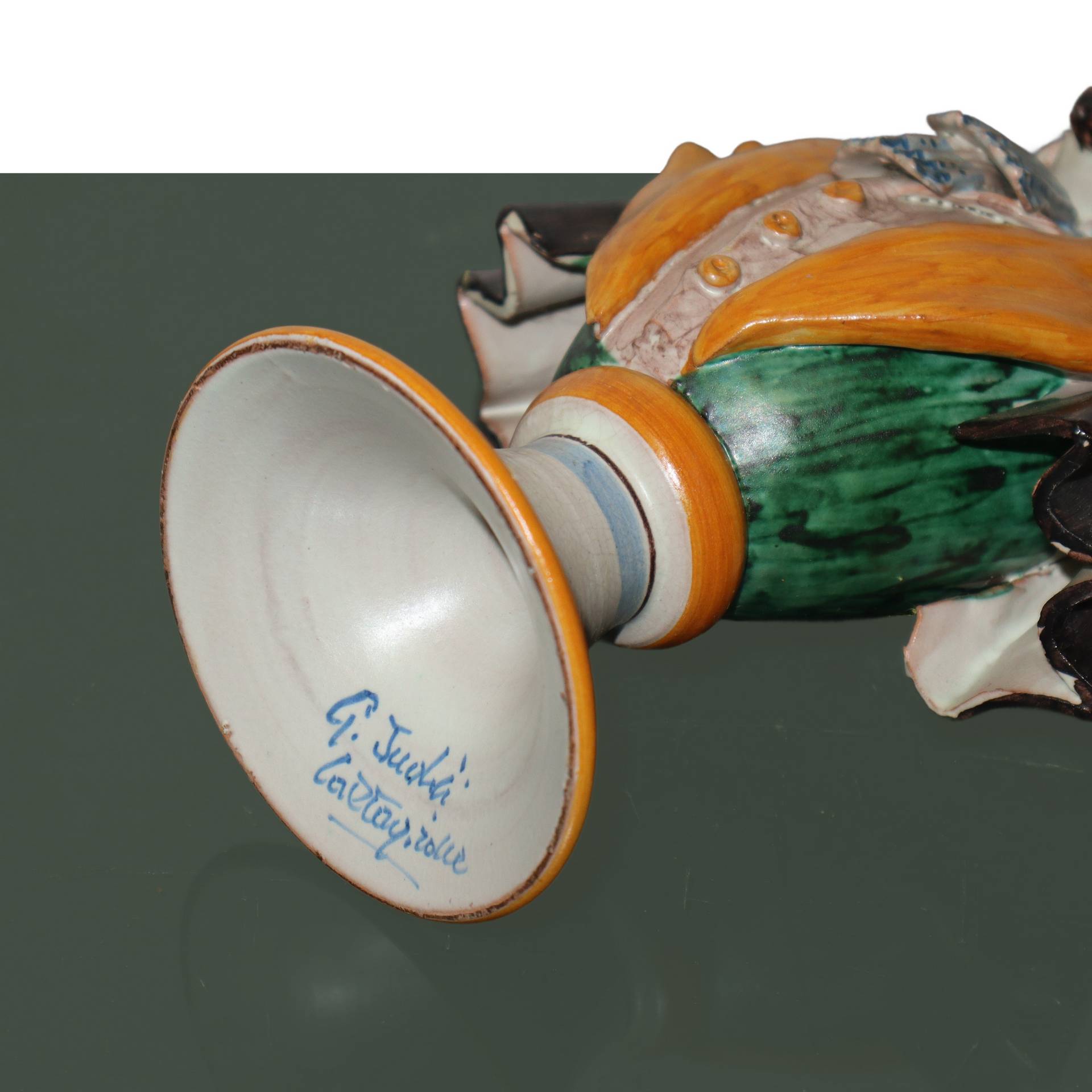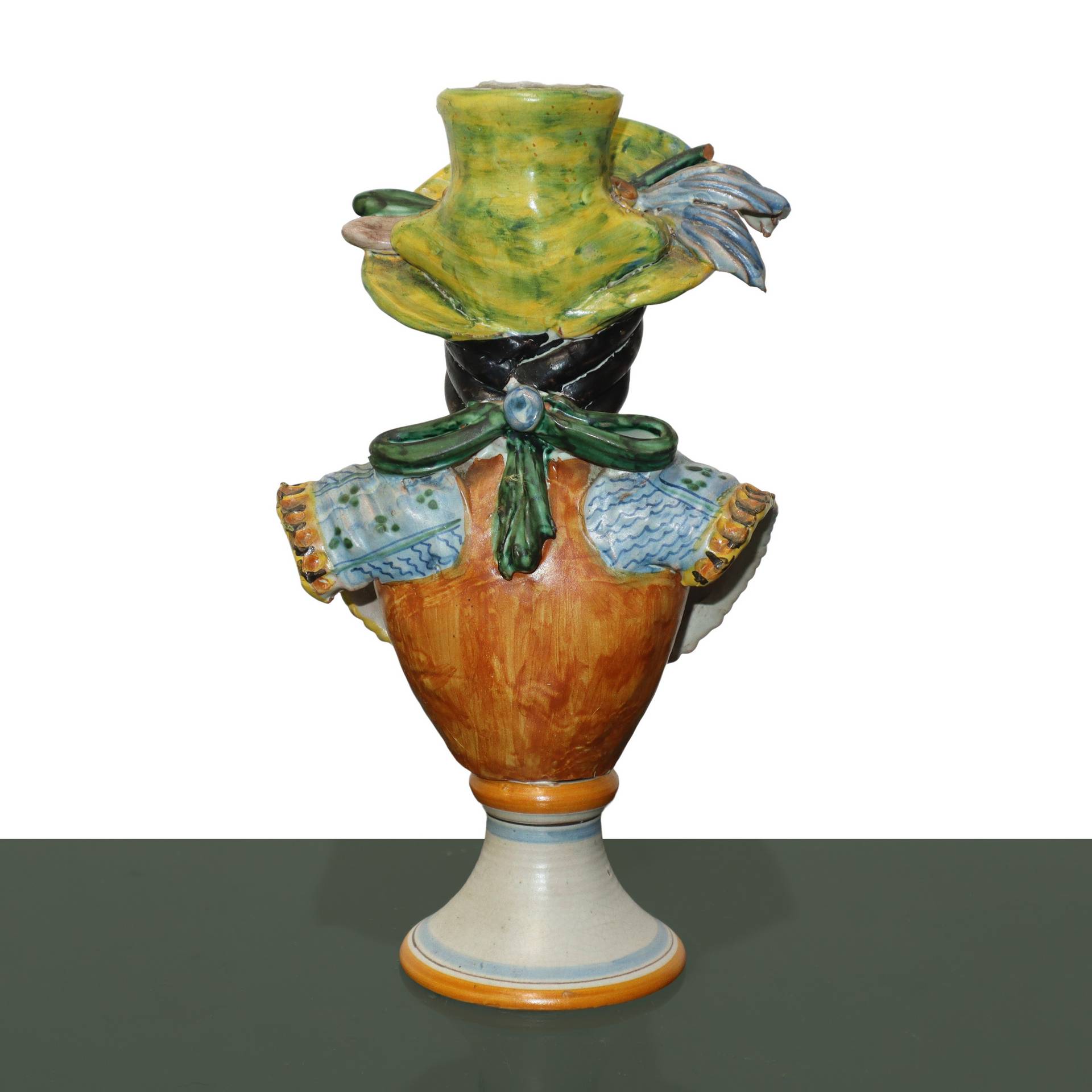 Coppia di Lumiere a mezzobusto in maiolica di Caltagirone, 20° secolo h cm 24 Firmate G.Iudici Firmate G.Iudici