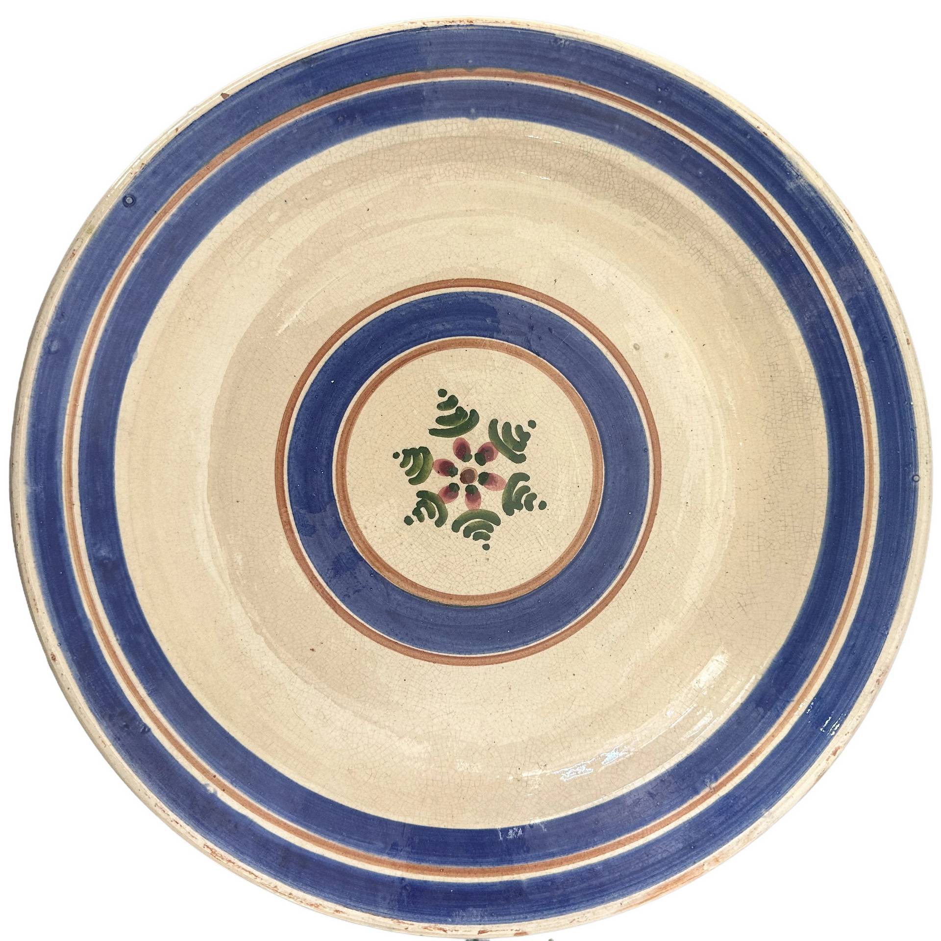 Piatto in ceramica policroma di Patti nei toni del blu, 20° secolo