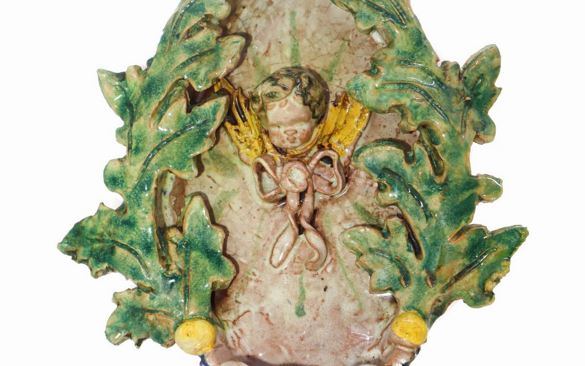 Acquasantiera Caltagirone, 20° secolo cm 20 x cm 18 Firmata Bonaccorso sul retroFirmata Bonaccorso sul retro