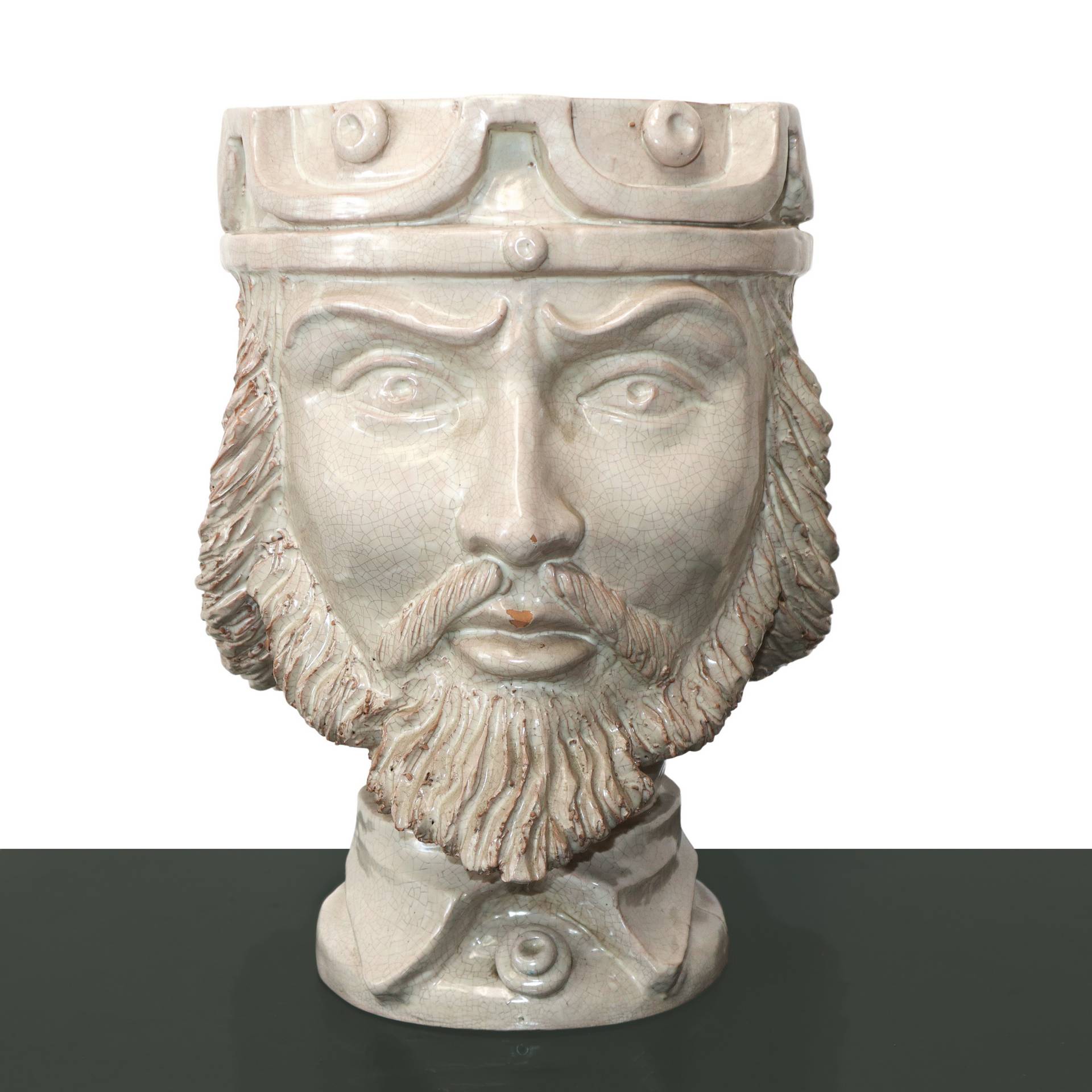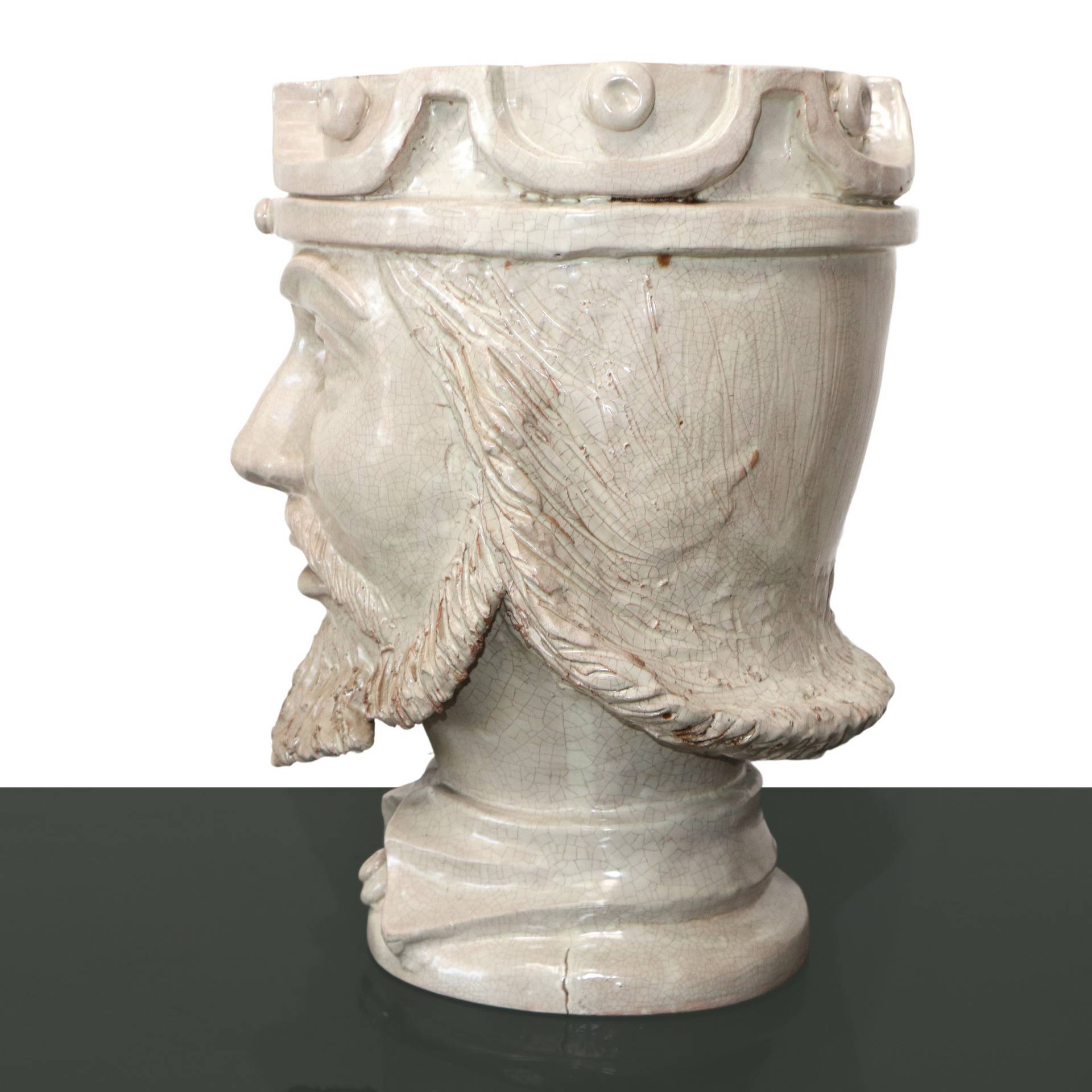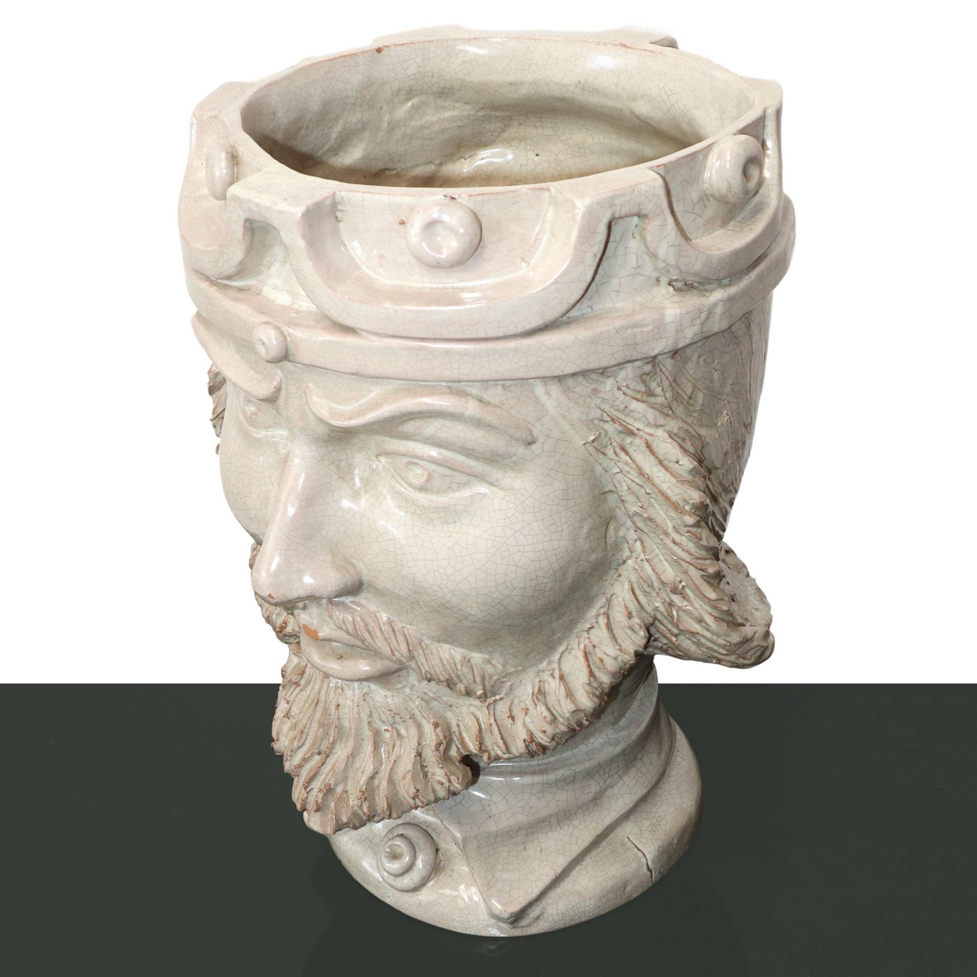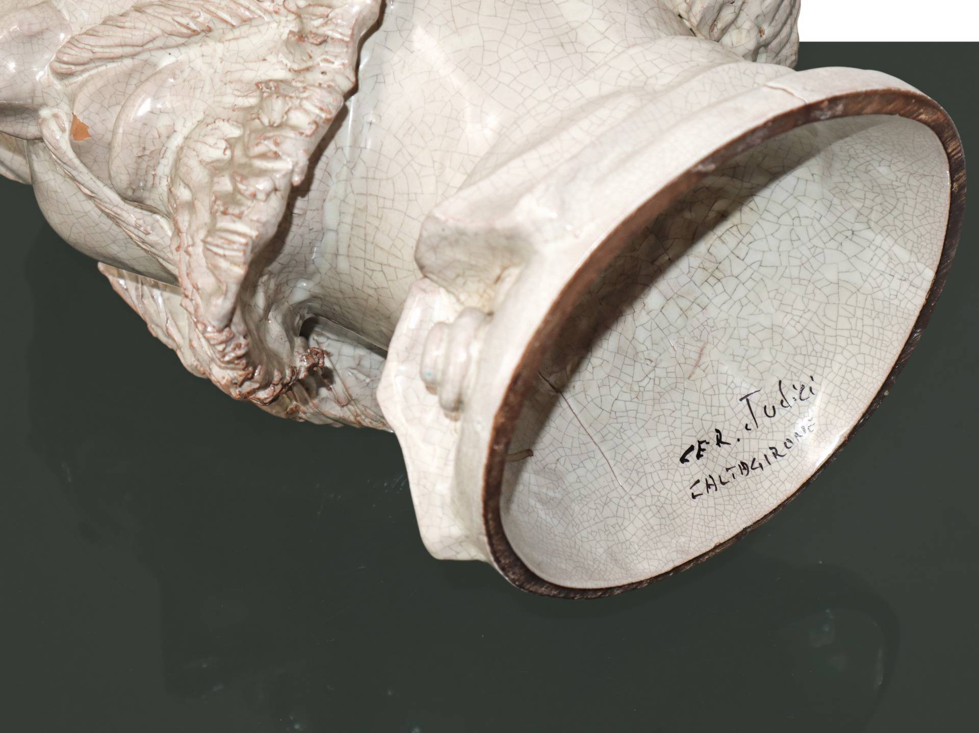 Testa in maiolica di Caltagirone, 20° secolo h cm 38X29 Firmata Iudici Firmata Iudici