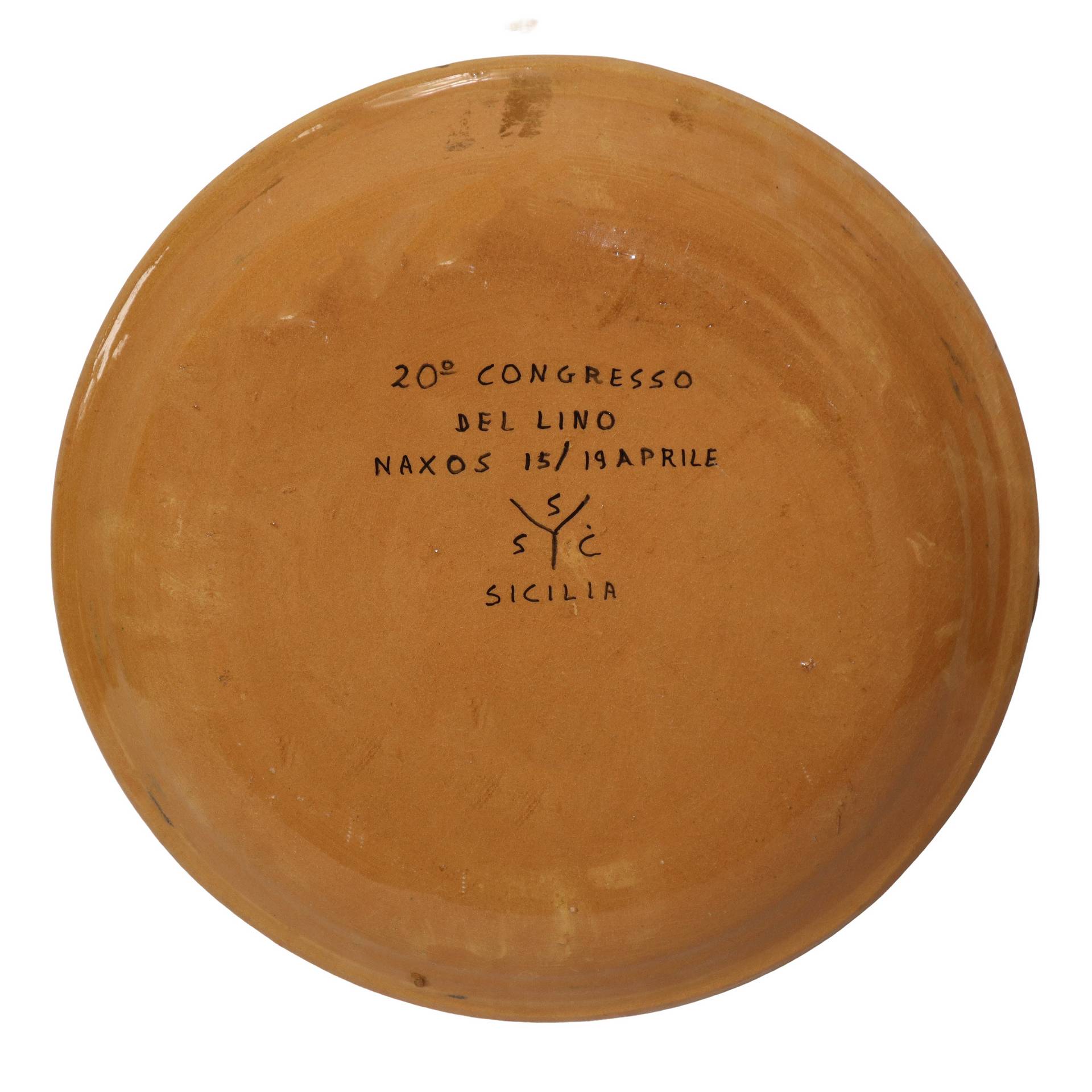 Piatto in maiolica di Caltagirone smaltato e dipinto con raffigurazioni di cedri, 20° secolo
