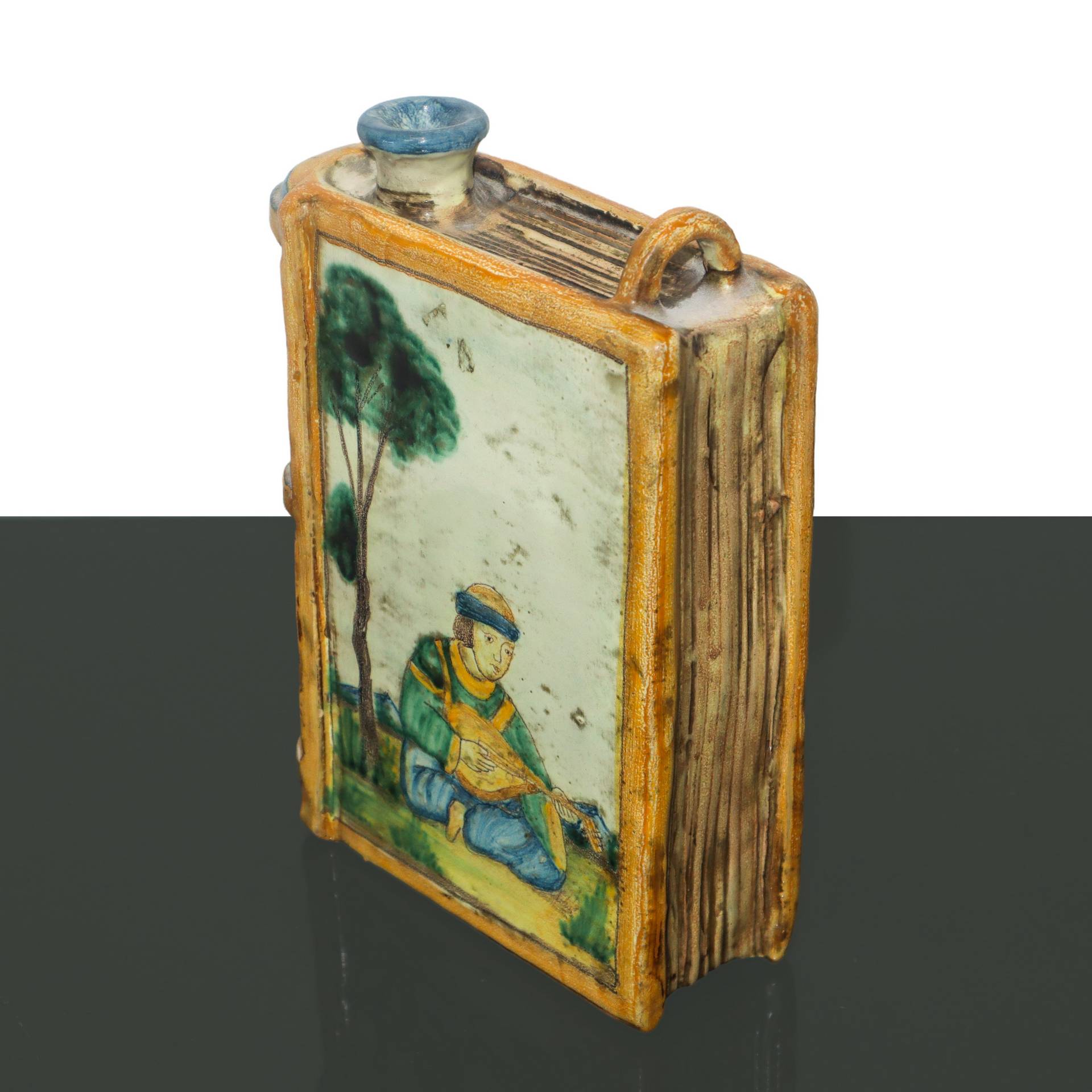 Alessi Ceramiche - Borraccia a libro in ceramica cm 17,5X14 Firmata Alessi Caltagirone sul fondo Firmata Alessi Caltagirone sul fondo