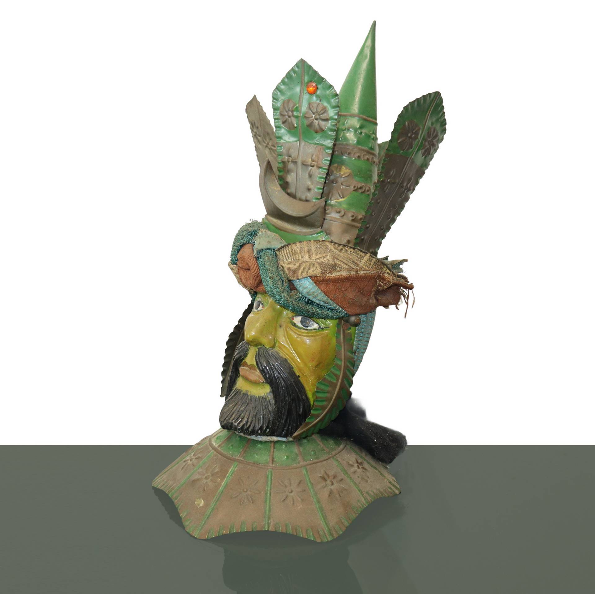 Testa di moro scolpita in legno policromo con struttura in metallo, 19° secolo