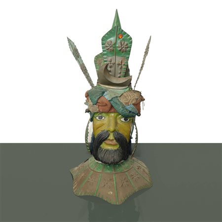 Testa di moro scolpita in legno policromo con struttura in metallo, 19° secolo h cm 47X24