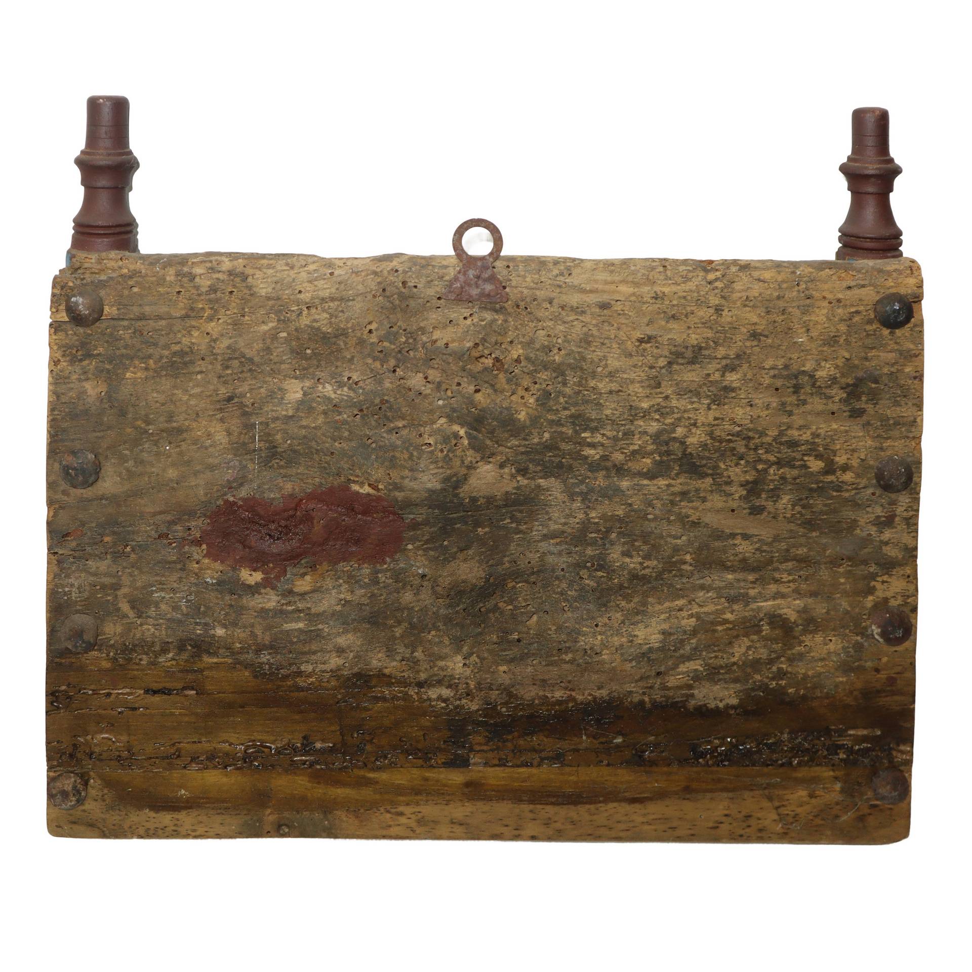 Frammento di carretto raffigurante sfida tra saraceni e paladini, Primi 20° secolo h cm 40X44 dipinto su tavola intagliata e scolpita