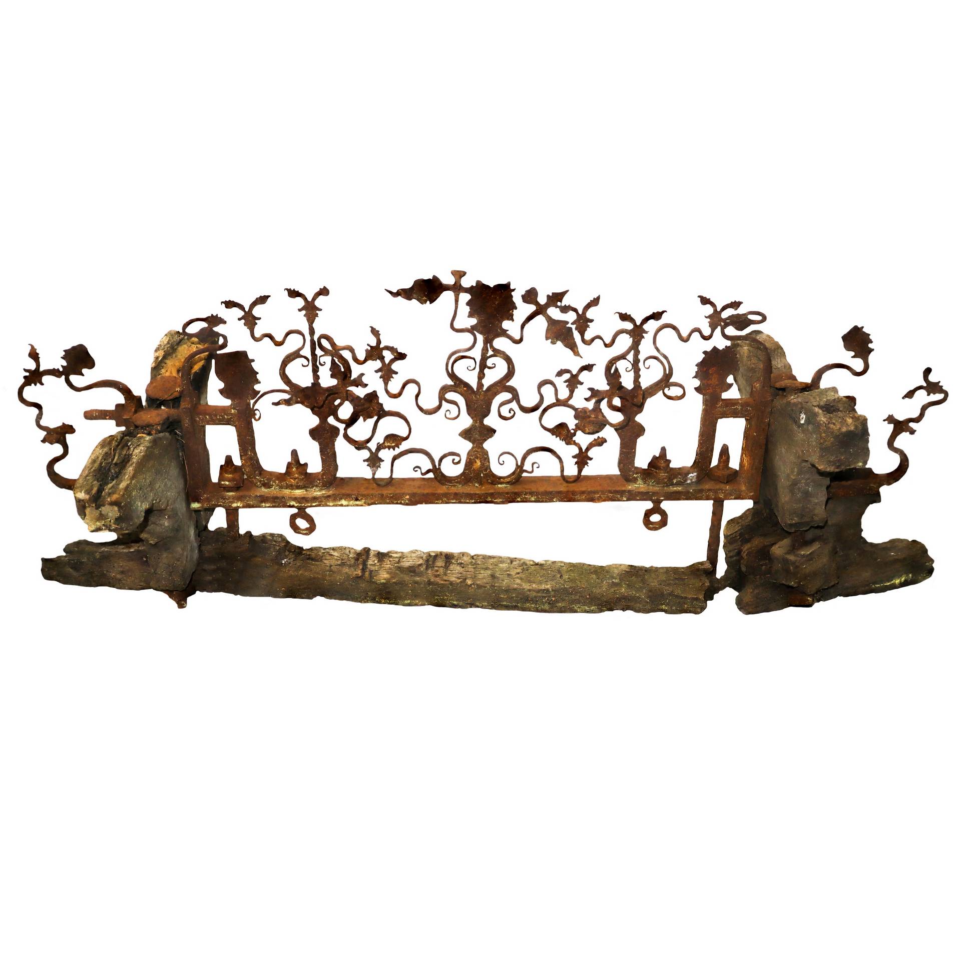 Frammento di carretto, cascia di fuso, in metallo forgiato e legno, Sicilia, Fine 19° secolo H cm 38x110x36