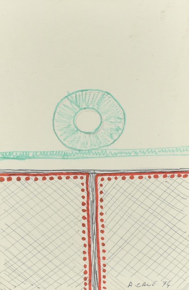 Aldo Calo' EQUILIBRIO matita e pennarello su carta, cm 15x10 firma e data...