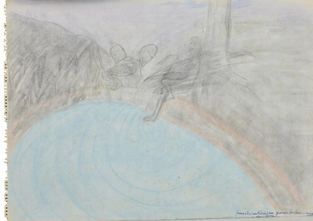 Dando UN GIORNO LONTANO tecnica mista su carta, cm 34,7x50,2 firma, titolo e...