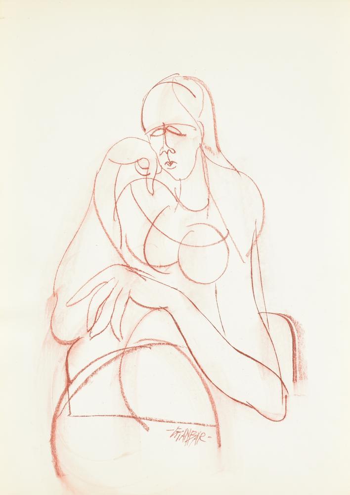 GIANBAR (Gianni Baretta) RIFLESSIONE tecnica mista su cartoncino, cm 50x35 firma