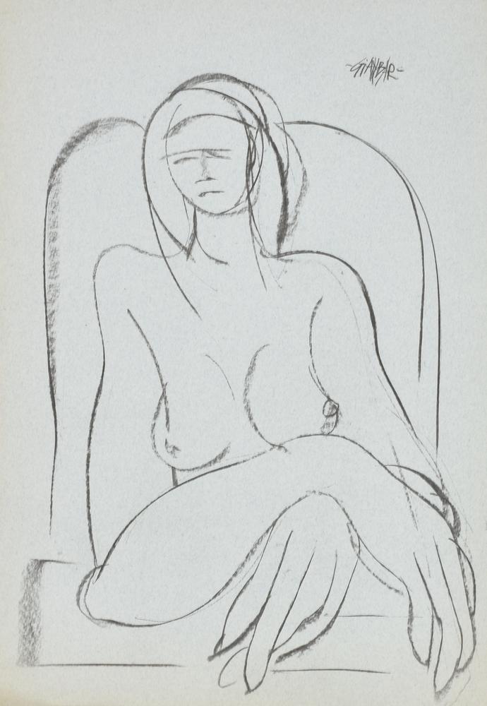 GIANBAR (Gianni Baretta) NUDO SEDUTO carboncino su carta, cm 50x35 firma sul...