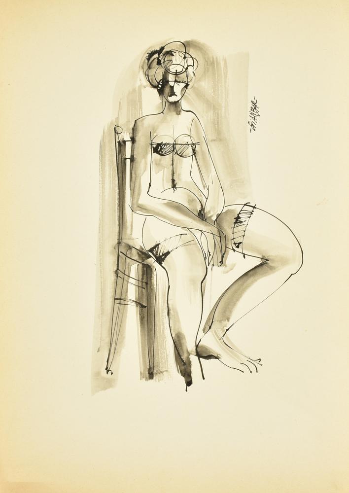 GIANBAR (Gianni Baretta) DONNA SEDUTA china acquarellata su carta, cm 50x35...