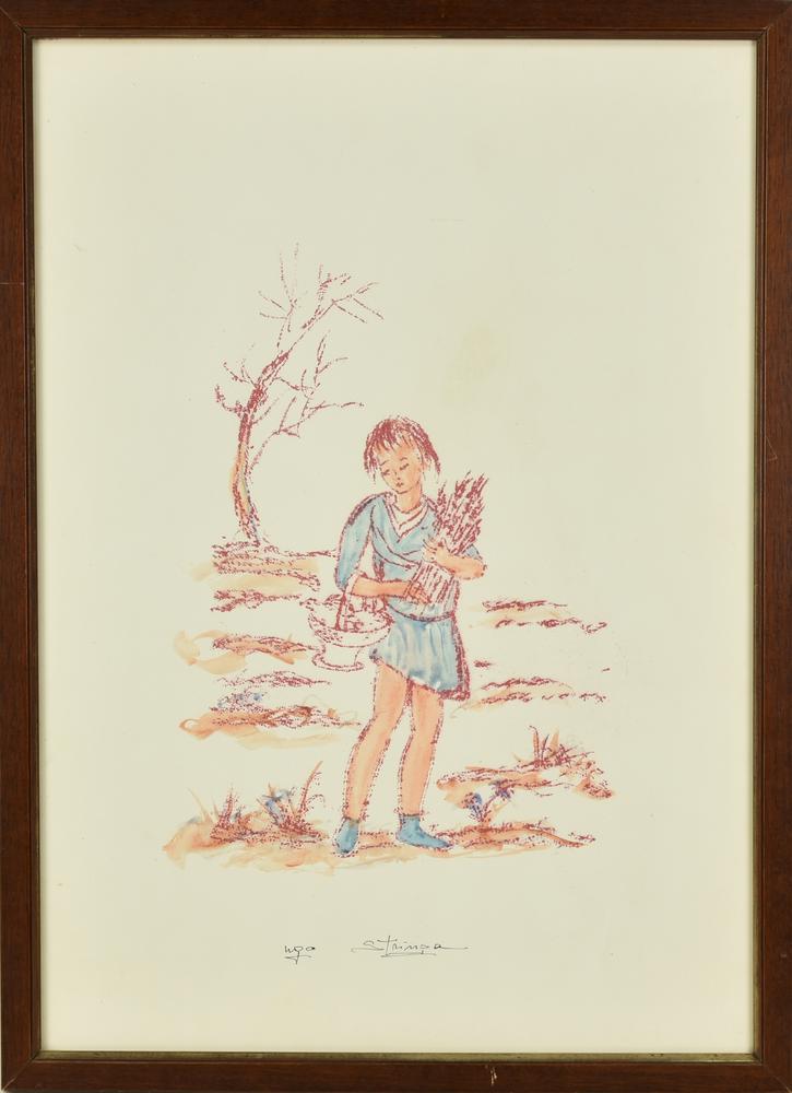 Ugo Stringa RACCOGLITRICE DI FIORI tecnica mista su carta, cm 50x35 firma