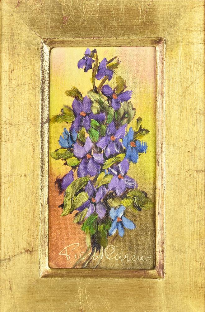 Piera Carena FIORI olio su cartone intelato, cm 13x6 firma