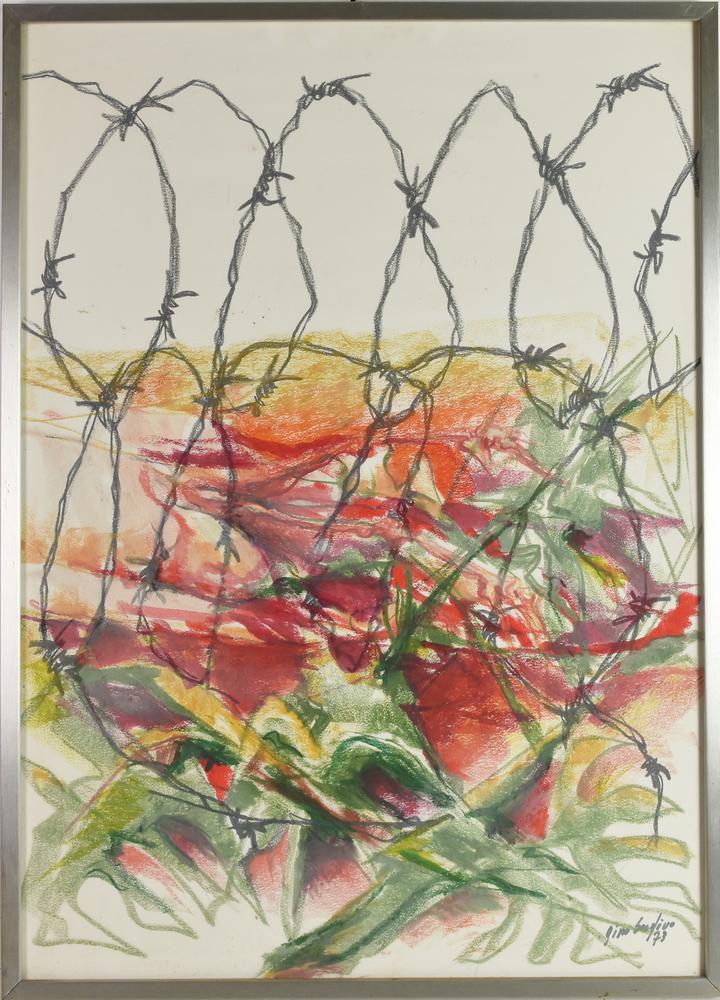 Gino Baglivo DIETRO LE FOGLIE, 1973 pastello grasso su carta, cm 68x48 firma...