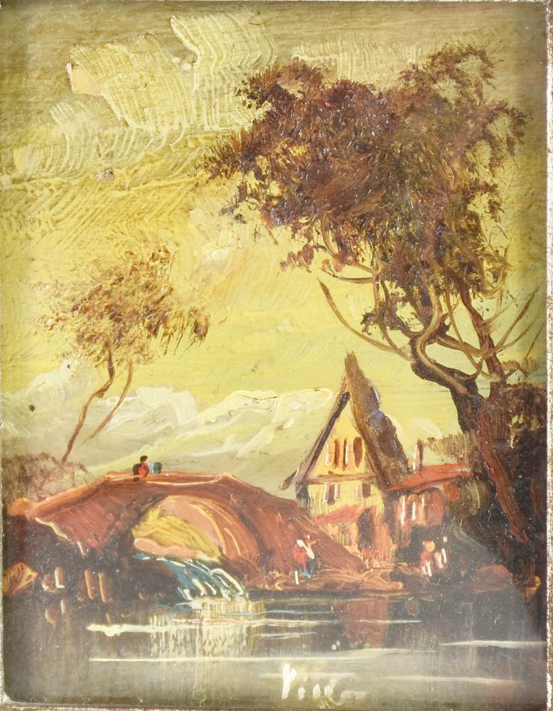 Ignoto PAESAGGIO olio su tavola, cm 9x7 firma