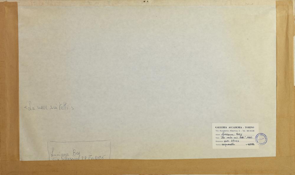 Luciana Bey LA NEVE SUI TETTI, 1995 acquerello su carta, cm 23x48 firma e...