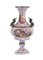 VASO IN ARGENTO E SMALTI POLICROMI, VIENNA, XIX SECOLO, a doppia ansa con applicazioni vitree di cui una mancante, decoro a scene allegoriche entro riserve e grottesche su fondo rosa; lieve sbeccatura.