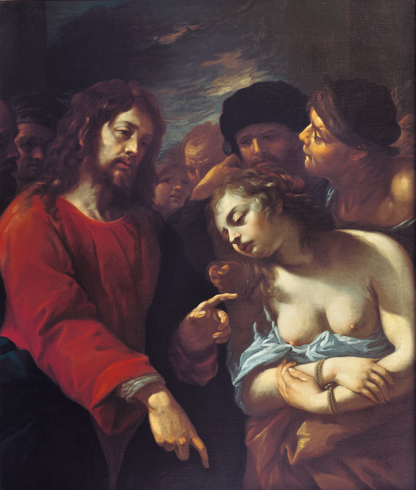 NUVOLONE GIUSEPPE Milano 1619 - 1703Cristo e l'adulteraOlio su tela, cm 124x102.