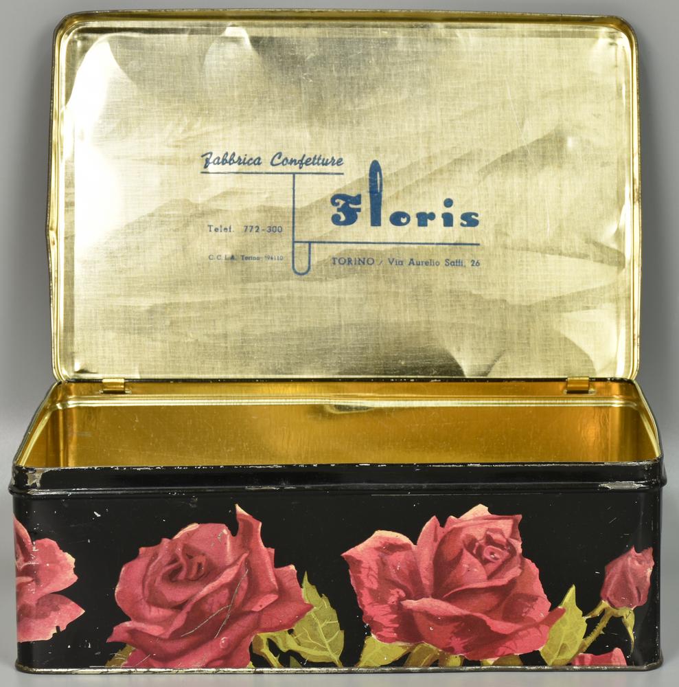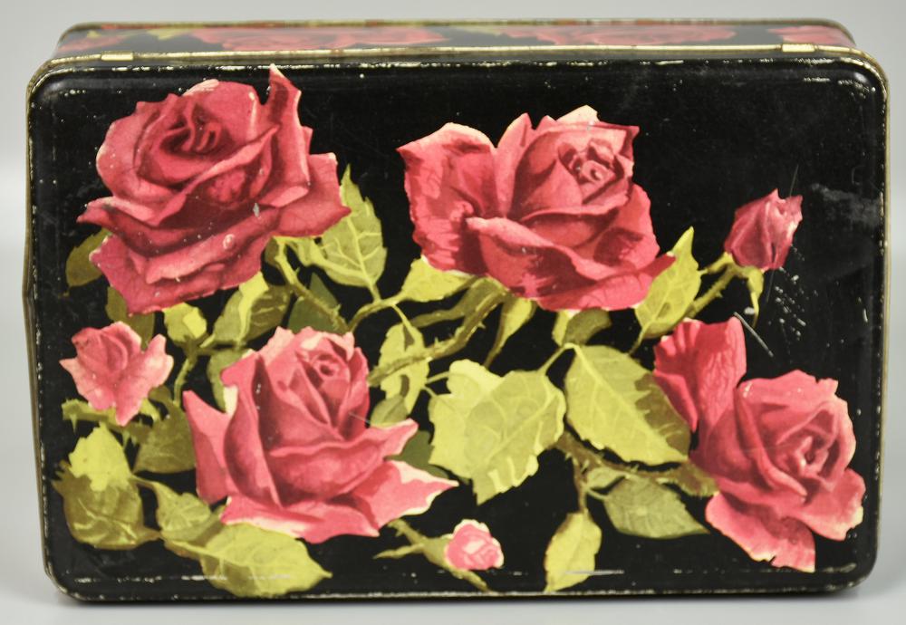 scatola in latta litografata con motivi di piccole rose