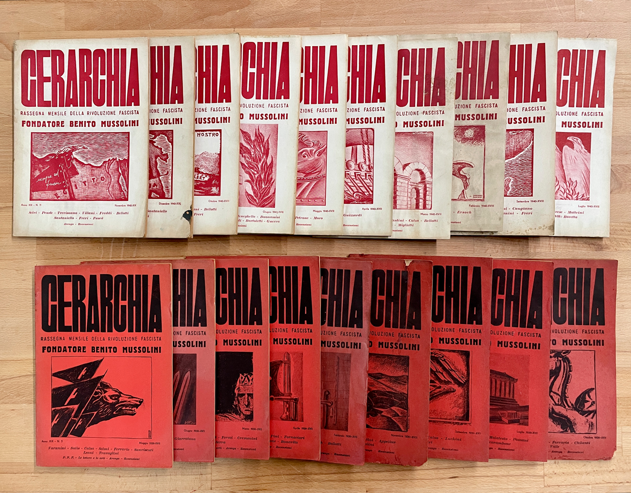 Lotto unico di 19 riviste del periodico 'Gerarchia. Rassegna mensile della Rivoluzione Fascista', editi tra il 1939 e il 1940