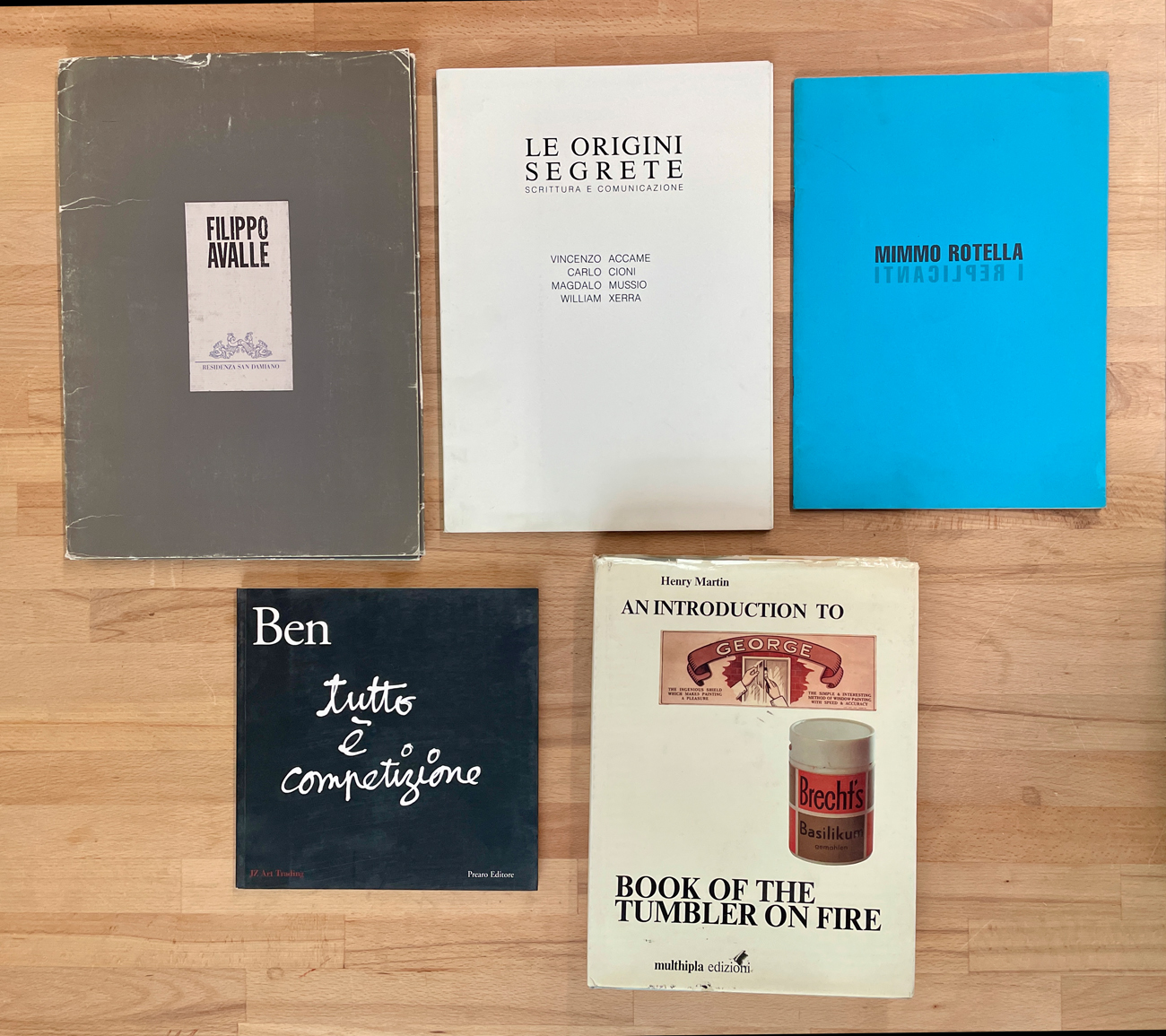Catalogo riccamente illustrato contenente 4 riproduzioni sciolte degli artisti Vincenzo Accame, Carlo Cioni, Magdalo Mussio e William Xerra