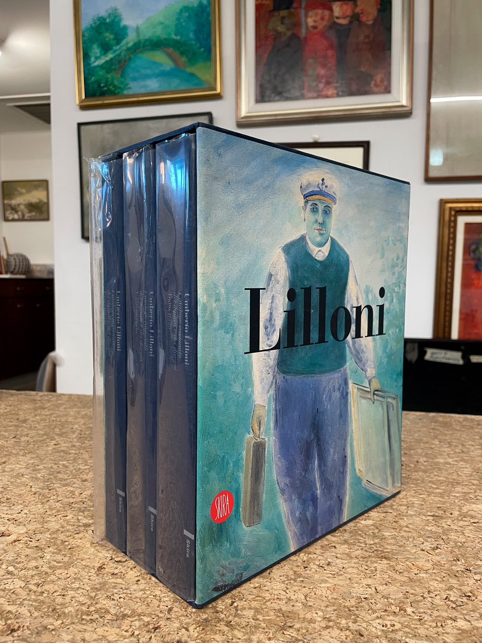 Cofanetto contenente tre tomi riccamente illustrati del catalogo ragionato dei dipinti e dei disegni dell'Artista (Tomo primo, tomo secondo e tomo terzo) a cura di Renata Lilloni