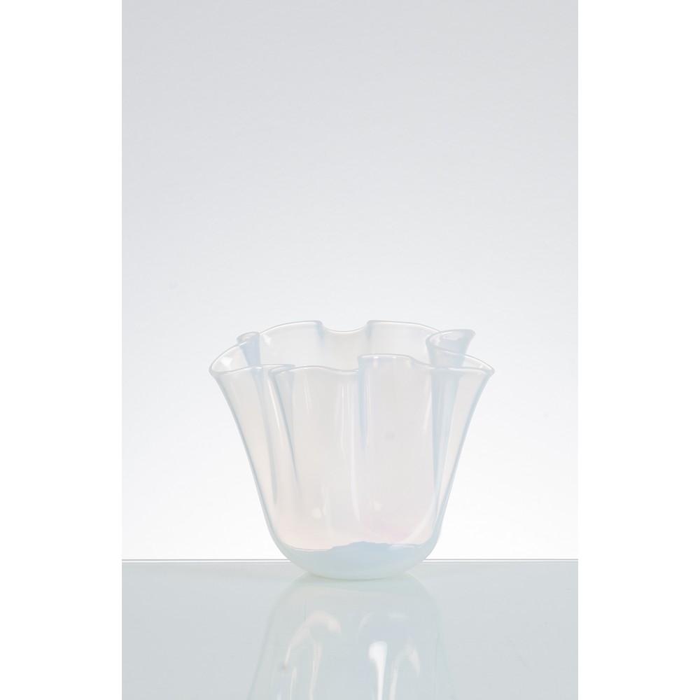 Vaso modello “Fazzoletto” in vetro lattimo opalescente.
