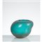 Vaso in vetro corroso verde, corpo sferico con movimento libero laterale, larga bocca circolare lievemente introflessa.