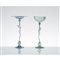 Collezione di due bicchieri in vetro soffiato uno azzurrino e uno verde, gambo con figura femminile con coppa sovrastante in vetro lievemente costolato. Firma a graffio.