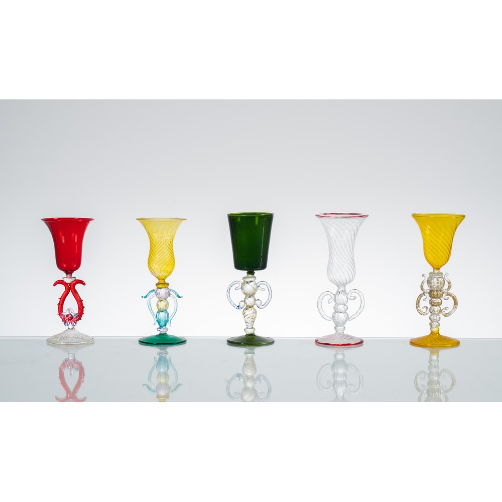 MAESTRI MURANESI, Collezione di cinque bicchieri in vetro