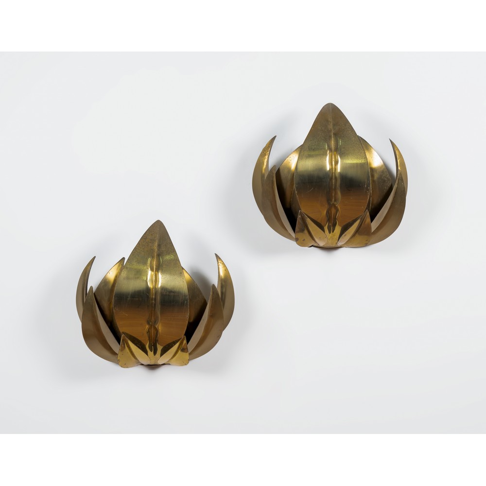 A PAIR OF “FIORE DI LOTO” MODEL WALL LAMPS ATTRIBUTABLE TO MAISON JANSEN.