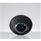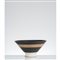 Coppa in ceramica smaltata nera, bianca e beige, corpo a vaso, decoro interno astratto in smalto blu. Firma sotto la base.