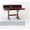 Scrittoio modello “530” in legno esotico, piano rettangolare, sul fronte due cassetti con un vano a giorno centrale, sul piano due vani con chiusura a serrandina.