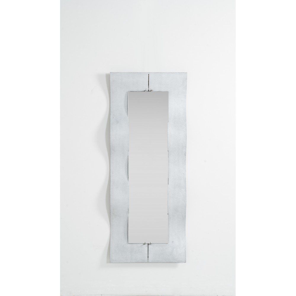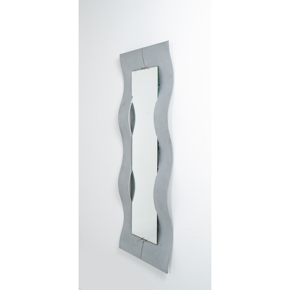 Specchio da parete modello "Wave", cornice in alluminio lavorato e ondulato, cristallo specchiato rettangolare. Firma incussa.