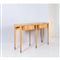 Consolle in legno di acero piano rettangolare, sul fronte due cassetti, fianchi con sezione inclinata, gamba quadrangolare con finali in ottone. Certificato di autenticità Archivio Ponti.